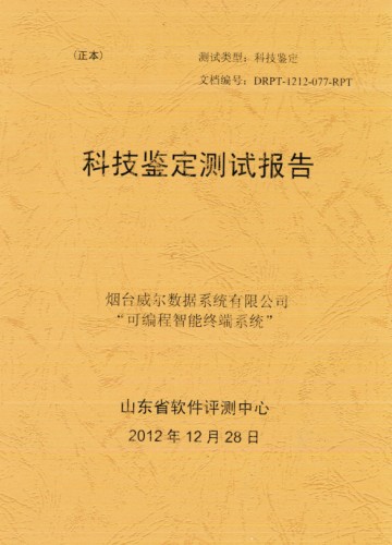 2012年12月27日,山東省軟件評(píng)測(cè)中心(SDSTC)對(duì)煙臺(tái)威爾數(shù)據(jù)系統(tǒng)有限公司“可編程智能終端系統(tǒng)”軟件項(xiàng)目進(jìn)行了科技鑒定測(cè)試。測(cè)試結(jié)論表明,威爾“可編程智能終端系統(tǒng)”軟件項(xiàng)目達(dá)到預(yù)定目標(biāo),能夠在物聯(lián)網(wǎng)智能終端系統(tǒng)設(shè)計(jì)開(kāi)發(fā)中使用。威爾“可編程智能終端系統(tǒng)”是一種為快速開(kāi)發(fā)物聯(lián)網(wǎng)專業(yè)應(yīng)用而研發(fā)的通用模塊化終端設(shè)備和開(kāi)發(fā)工具,采用模塊化通用平臺(tái)替代專用芯片系統(tǒng),ARM處理器+LINUX操作系統(tǒng)的智能機(jī)概念以及可配置功能模塊將大大減少系統(tǒng)故障率并能提高系統(tǒng)性能。山東省軟件評(píng)測(cè)中心對(duì)“可編程智能終端系統(tǒng)”軟件項(xiàng)目的用戶文檔、功能性、可靠性、易用性四個(gè)方面進(jìn)行了科技鑒定測(cè)試,測(cè)試結(jié)果完全符合國(guó)家標(biāo)準(zhǔn)GB/T 25000.51-2010中對(duì)用戶文檔要求及軟件質(zhì)量要求。