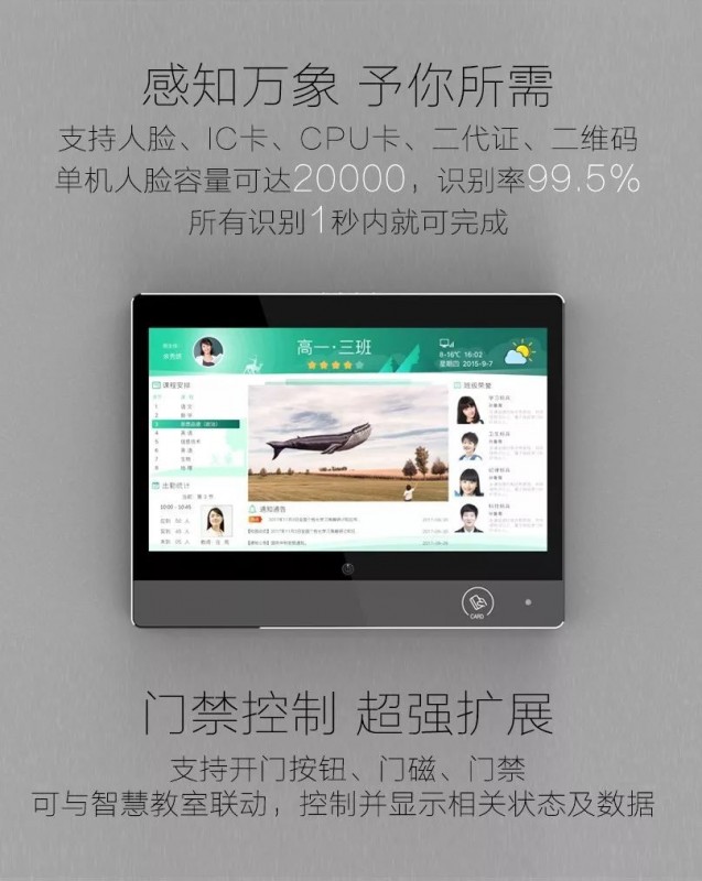 支持開(kāi)門(mén)按鈕、門(mén)磁、門(mén)禁,可與智慧教室聯(lián)動(dòng),控制并顯示相關(guān)狀態(tài)及數(shù)據(jù)。