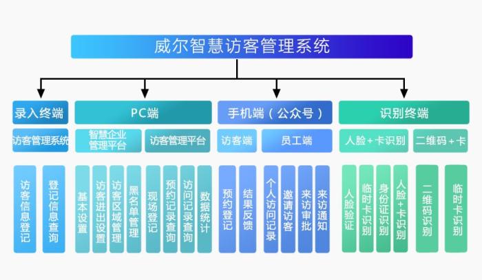 威爾智慧企業(yè)訪客管理系統(tǒng)是一個(gè)集智能IC卡、人臉識(shí)別認(rèn)證、信息安全管理、軟件、網(wǎng)絡(luò)及硬件終端為一體的智能化管理系統(tǒng)。通過在企業(yè)大門口設(shè)置人臉識(shí)別通道閘機(jī)、內(nèi)部設(shè)置門禁人臉識(shí)別終端,配合出入口人員進(jìn)出管理系統(tǒng),對進(jìn)入企業(yè)的外部來訪人員進(jìn)行全面數(shù)字化管理,高效準(zhǔn)確地進(jìn)行登記、信息錄入、確認(rèn)及授權(quán)等,提高企業(yè)安全防范等級、安保工作效率及安全性,增強(qiáng)企業(yè)形象。