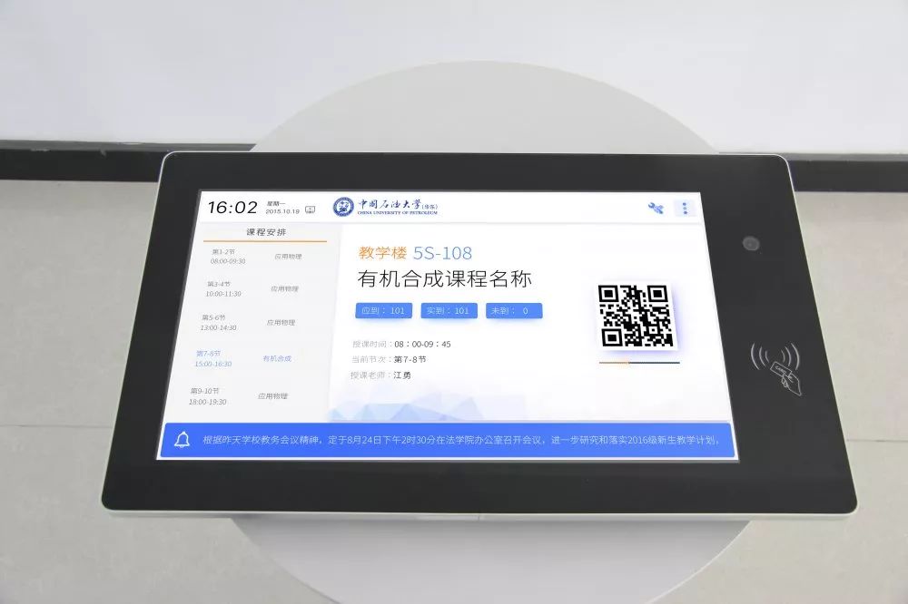 2016年,石油大學(xué)初始建設(shè)此系統(tǒng),部署450臺10英寸班牌在多媒體教室、47臺21.5英寸班牌在實驗室、機房等場所,覆蓋教學(xué)樓、實驗室共八棟。在智慧化進行課表展示和宣傳展示的同時,增強石油大校園數(shù)字化建設(shè),有效提升學(xué)校形象。