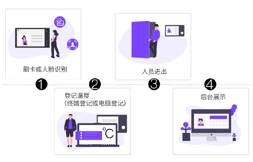 體溫上報(bào):終端構(gòu)建體溫狀態(tài)登記功能,在識(shí)別成功后,可根據(jù)溫槍結(jié)果對(duì)人員體溫狀態(tài)進(jìn)行登記,輕松達(dá)成人、溫合一,進(jìn)而滿足各方管控要求。
