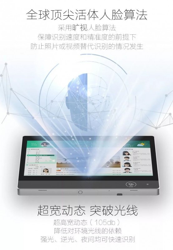 威爾BP21.5英寸人臉識(shí)別智能終端,采用高寬動(dòng)態(tài)(105db),降低設(shè)備對(duì)環(huán)境光的依賴(lài),強(qiáng)光、逆光、夜間均可快速識(shí)別。