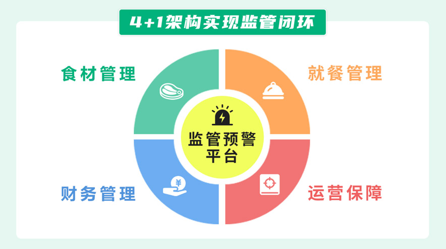 而落地這一格局的關(guān)鍵,在于織就“一張網(wǎng)”——威爾數(shù)據(jù)中小學校食堂智慧管理系統(tǒng)正是針對這些痛點而設計,其"4+1"系統(tǒng)架構(gòu)為破解這些難題提供了技術(shù)支撐。該系統(tǒng)的食材管理、就餐管理、財務管理和運營保障四個子系統(tǒng),與監(jiān)管預警平臺共同構(gòu)成了完整的監(jiān)管閉環(huán)。食材管理系統(tǒng)確保采購流程規(guī)范透明,就餐管理系統(tǒng)實現(xiàn)消費數(shù)據(jù)實時可溯,財務管理系統(tǒng)保障資金流轉(zhuǎn)清晰可查,運營保障系統(tǒng)則將日常作業(yè)數(shù)字化。這些系統(tǒng)數(shù)據(jù)的互聯(lián)互通,為跨部門協(xié)同提供了基礎(chǔ)。