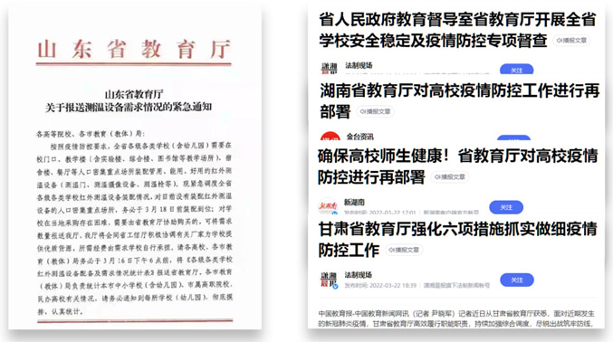 近期,全國(guó)各地高校、中小學(xué)均有聚集性疫情出現(xiàn),各省教育廳接連發(fā)表重要指示,強(qiáng)調(diào)“嚴(yán)把疫情防控校門關(guān)”,各級(jí)各類學(xué)校都要在校門口、教學(xué)樓等人員密集場(chǎng)所裝配測(cè)溫設(shè)備。為避免聚集性疫情出現(xiàn),除了嚴(yán)格管控學(xué)生出校,更要嚴(yán)防陌生來(lái)訪人員入校。